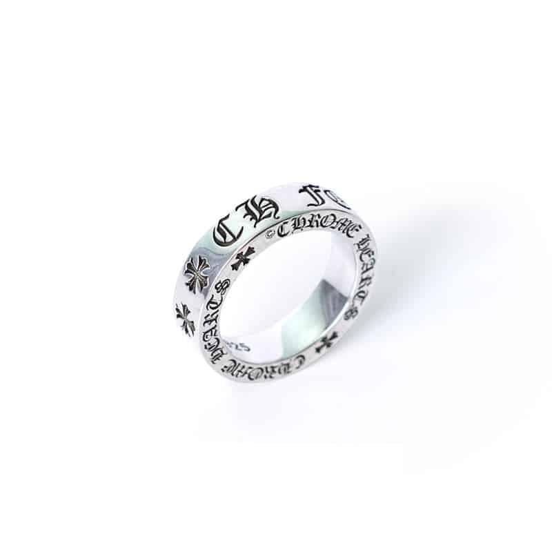 Many Chrome Hearts rings feature engraved words or phrases, including Chrome Hearts, Forever, F** You*, and God Bless.