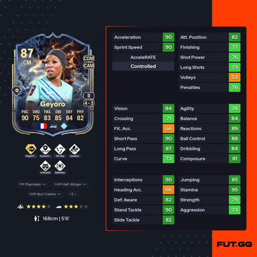 Reconnue comme une figure majeure du football féminin en France, Geyoro incarne la régularité et le leadership sur le terrain.