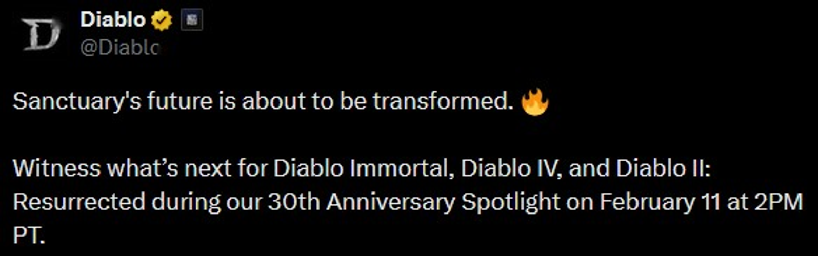 Mark your calendars for February 11th and join us for the Diablo 30th Anniversary Spotlight.